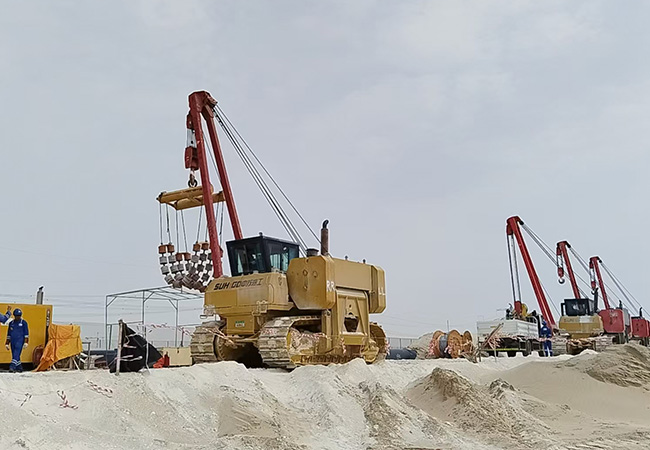 阿聯(lián)酋地區(qū)氣候炎熱,夏季氣溫常高達50攝氏度以上,加之沙塵環(huán)境復雜,對工程設(shè)備的性能提出了高要求。中蘇海工履帶吊管機以其強大的動力系統(tǒng)、高效的散熱設(shè)計以及堅固的結(jié)構(gòu),完美適應(yīng)了這些挑戰(zhàn),確保了施工的高效性和連續(xù)性。設(shè)備在高溫環(huán)境下運行穩(wěn)定,操作靈活,極大地提升了施工效率,贏得了現(xiàn)場施工人員的一致好評。